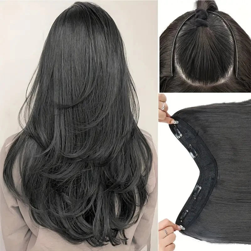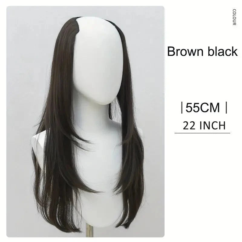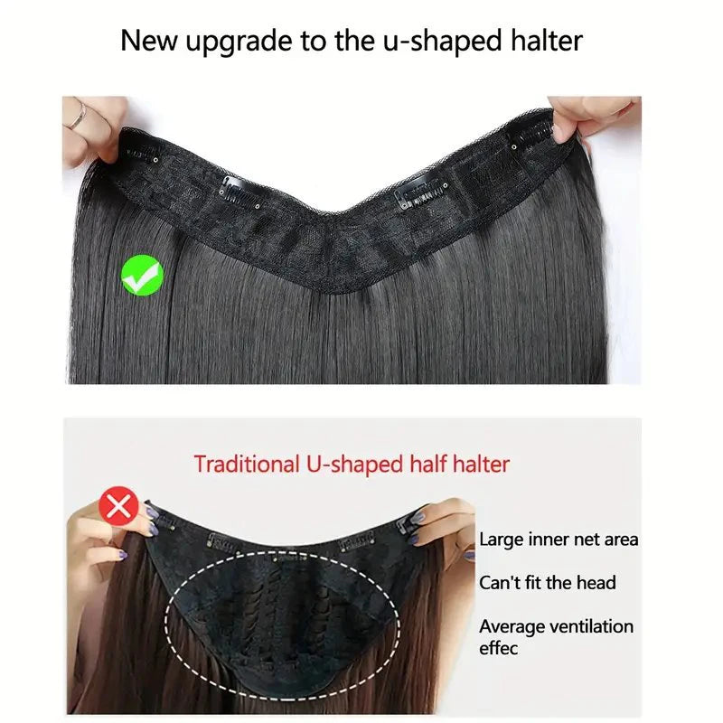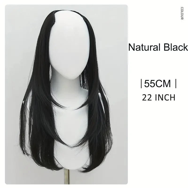 Invisible Seamless Synthetic U Shape Clip In Half Wig