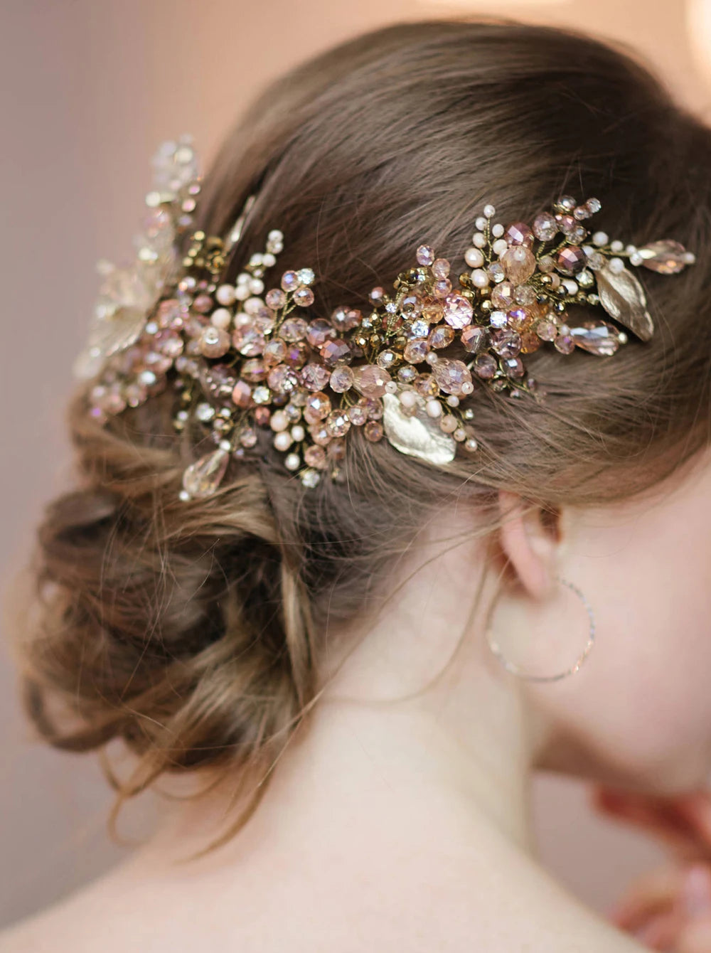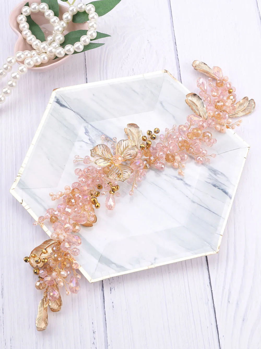 Trendy Bridemaid Flower Headband Gold Pink Crystal